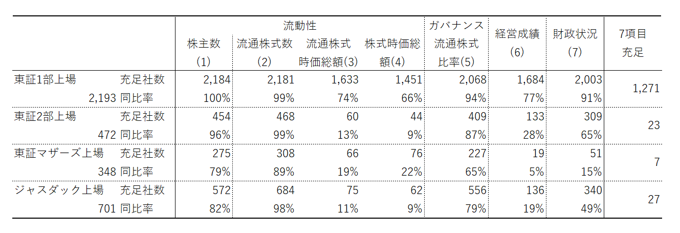 (注2)7項目充足は(1)から(7)の基準をすべて満たしている企業数。