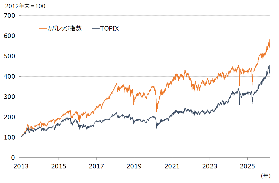 図表4は当経済研究所のカバレッジ銘柄で作成した株価指数(以下カバレッジ指数)とTOPIXの動きを比較したものである(直近値は3月17日現在、いずれも2012年末=100で指数化している)。